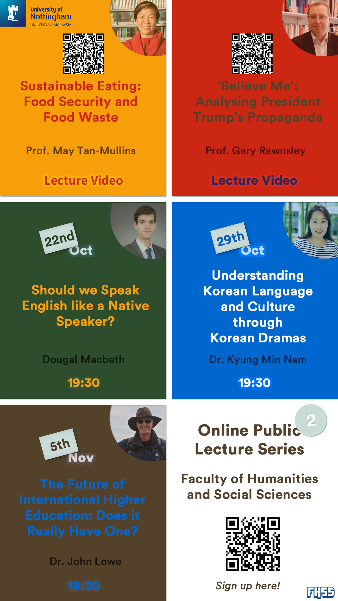 Those who are interested may watch the lecture videos or register for future lectures via the corresponding QR codes below.